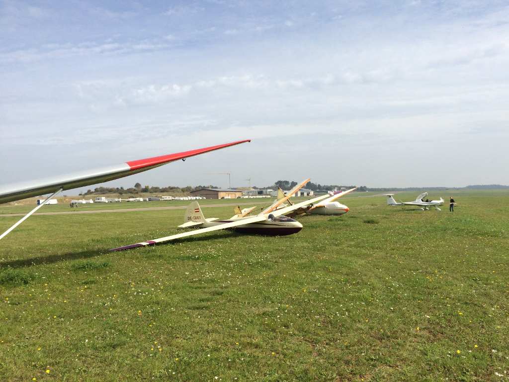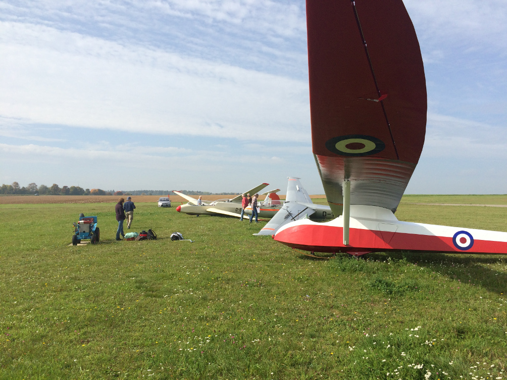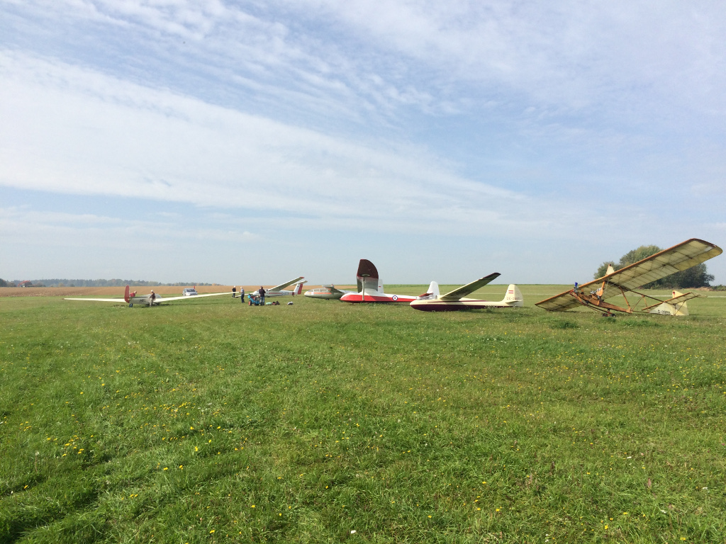 Das Ganze fand am 30.9 und 1.10 statt. Das Wetter war gut und es haben sich zwei Blanik(L13, L23), ein Kranich III, ein Slingsby T21, eine MG23, ein SG38, ein Spyr 5 sowie ein Baby versammelt. (zum Vergößern das Bild anklicken).